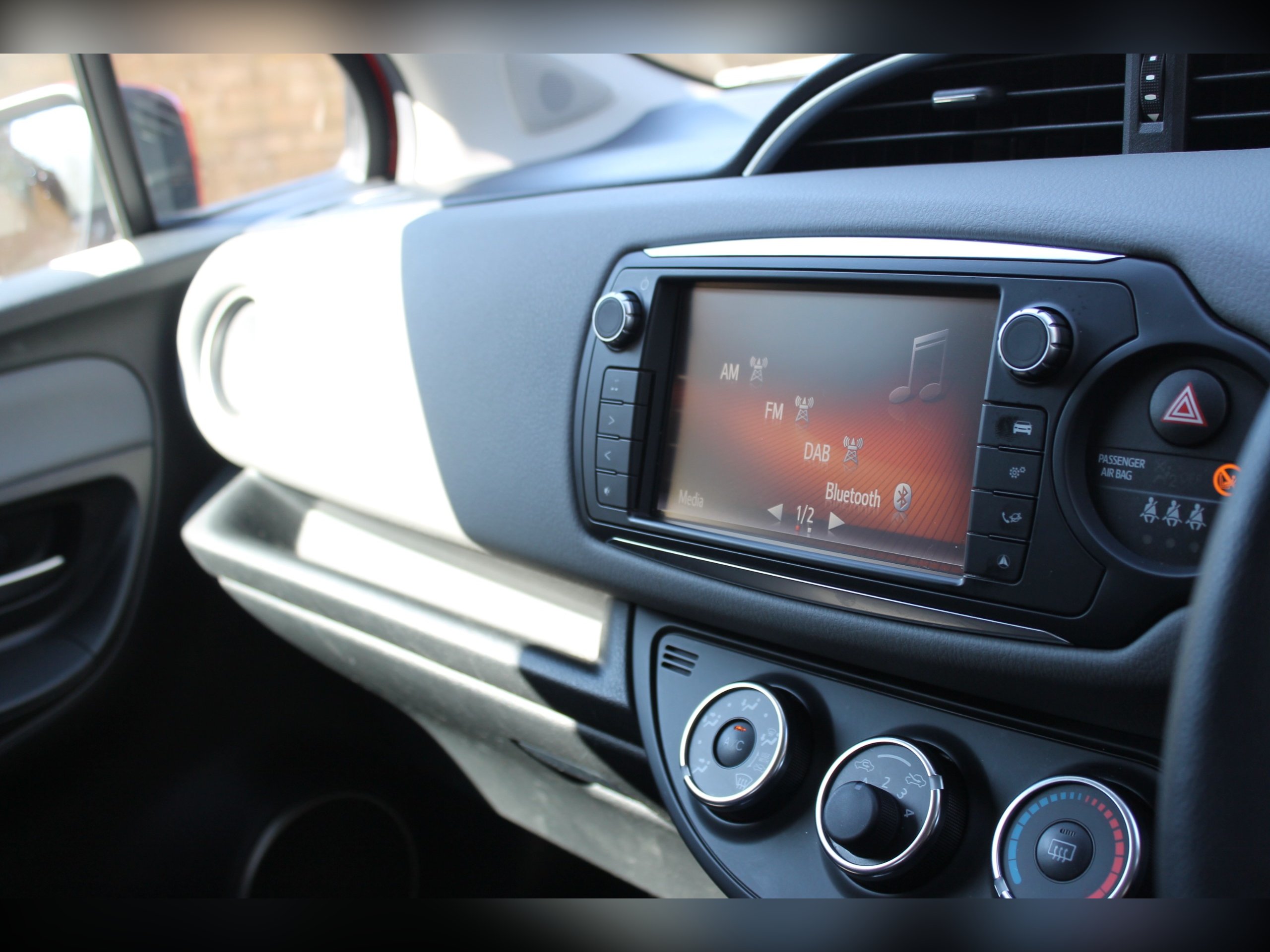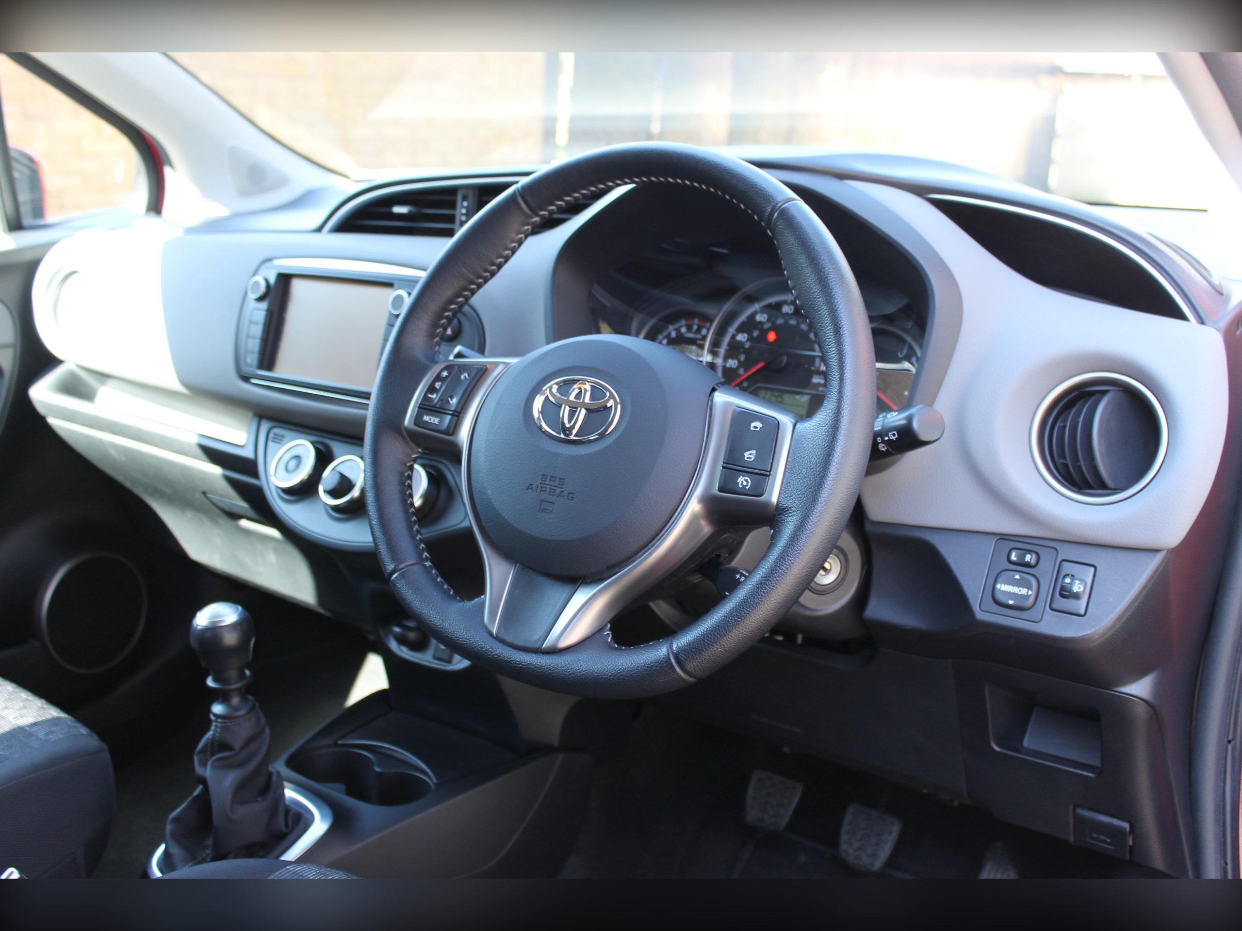 12V Socket, 15in Alloy Wheels - 5 Double-Spoke, 3-Spoke Leather Steering Wheel, ABS - Anti Lock Braking System, Air Conditioning, Airbags - Curtain, Airbags - Driver, Airbags - Driver Knee, Airbags - Front Passenger, Airbags - Front Passenger Cut-Off Switch, Airbags - Front Side, Aux Input, BAS - Brake Assist System, Black Lower Front Grille, Bluetooth Connectivity, Body Coloured Door Mirrors, Chrome Lower Grille Surrounds, Chrome Surrounds on Front Fog Lights, Clean Air Filter, Coat Hooks, Cupholder - Front and Rear, Daytime Running Lights, Door Handles - Body Coloured, EBD - Electronic Brakeforce Distribution, EBS - Emergency Brake Signal, Electric Power Steering - EPS, Electric Windows - Front, Electric and Heated Door Mirrors, Front Fog Lights, Glovebox, Grey Instrument Panel, Headlights - Follow Me Home, Headrests - Active Front, High Mounted Rear Brake Light, ISOFIX Child Restraint System - 2nd Row, Leather Gear Shift Knob, Leather Handbrake Lever, Multi Information Display, Projector Headlights, Radio with Preset Settings, Rear Body Coloured Garnish, Rear Headrests x3, Rear View Reversing Camera, Remote Central Locking, Seat Belt Reminder - Front and Rear, Seats - Anti-Whiplash Design, Seats - Drivers Height Adjustment, Seats - Front Back Pockets - Passenger, Seats - Sliding Front, Soft-Touch Instrument Panel, Speakers x6, Steering Wheel - Audio Controls, Steering Wheel - Telephone Switch, TPMS - Tyre Pressure Monitoring System, Tilt and Telescopic Adjustable Steering Wheel, Touch Screen - 7in High Resolution, Toyota Touch 2, Traction Control - TRC, Transponder Key Engine Immobiliser, Trip Computer.